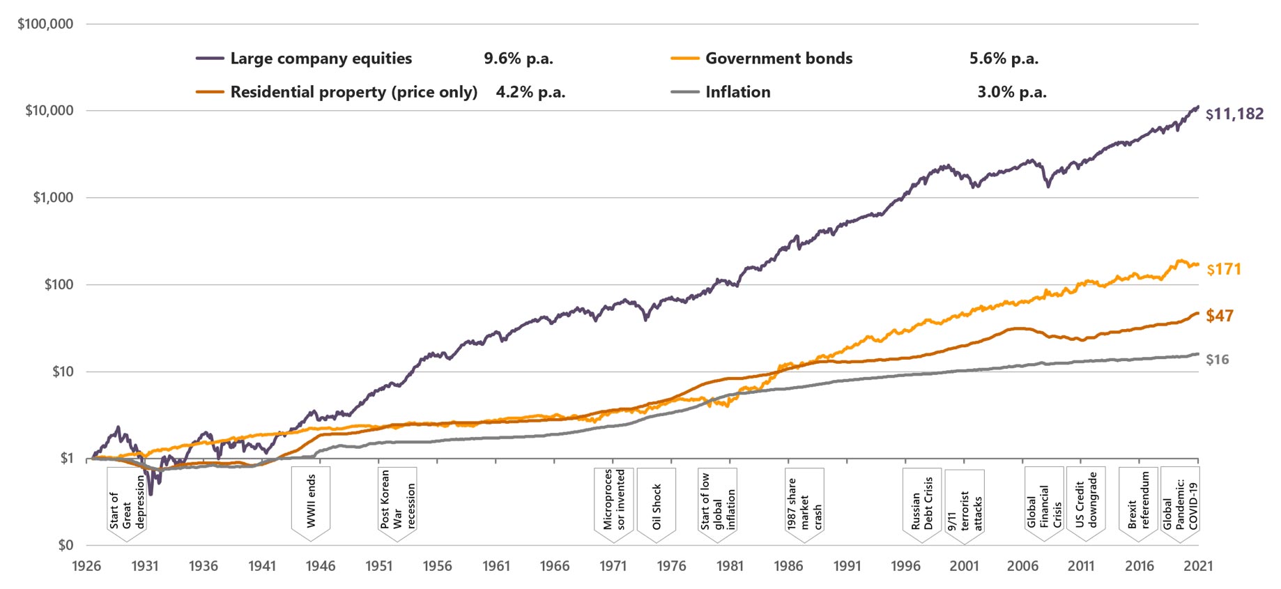 Other assets also outperformed inflation over this period, including bonds and residential property, although not by as much.